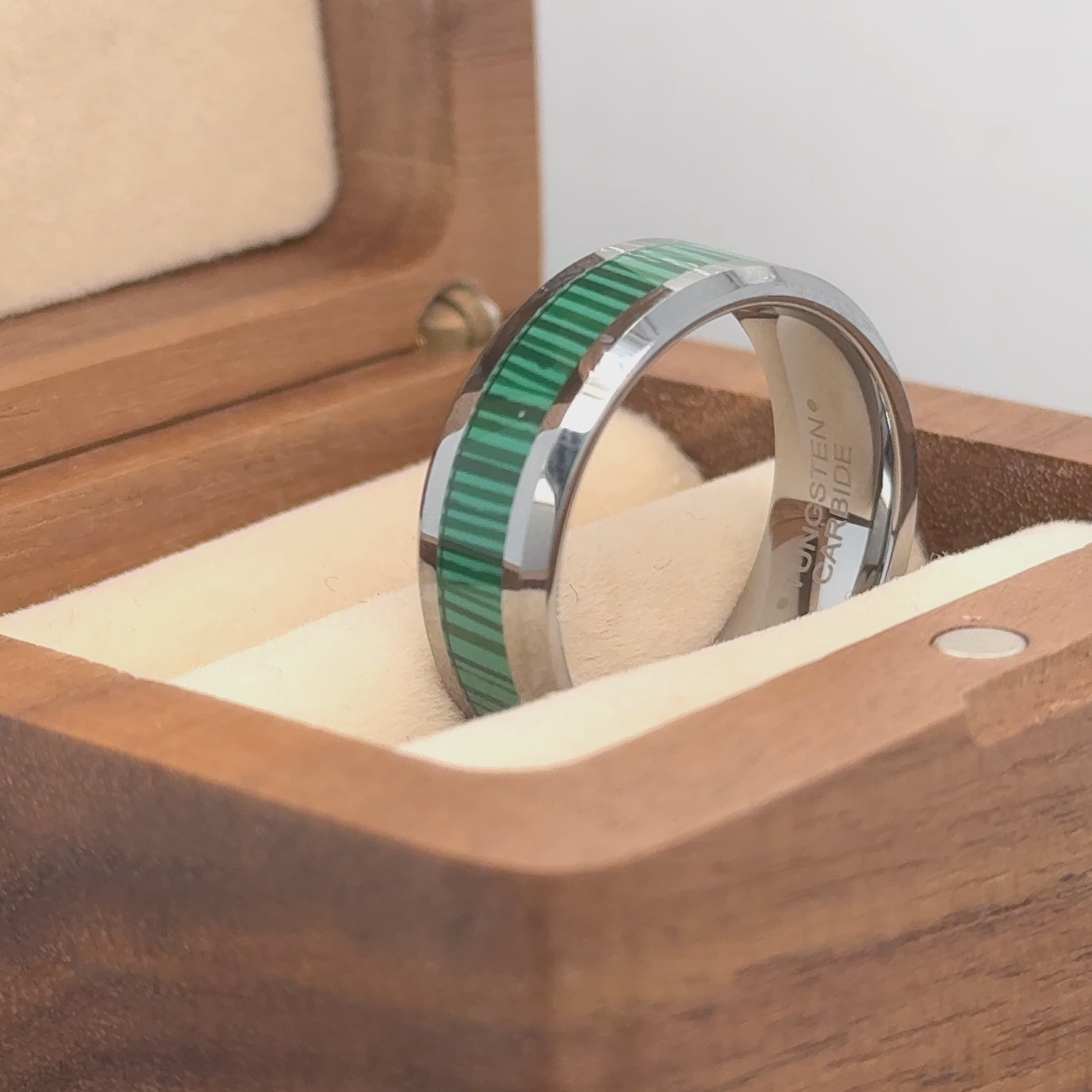 8mm Beveled Edge with Lapis Lazuli Inlay/Malachite Strips Inlay Tungsten Ring