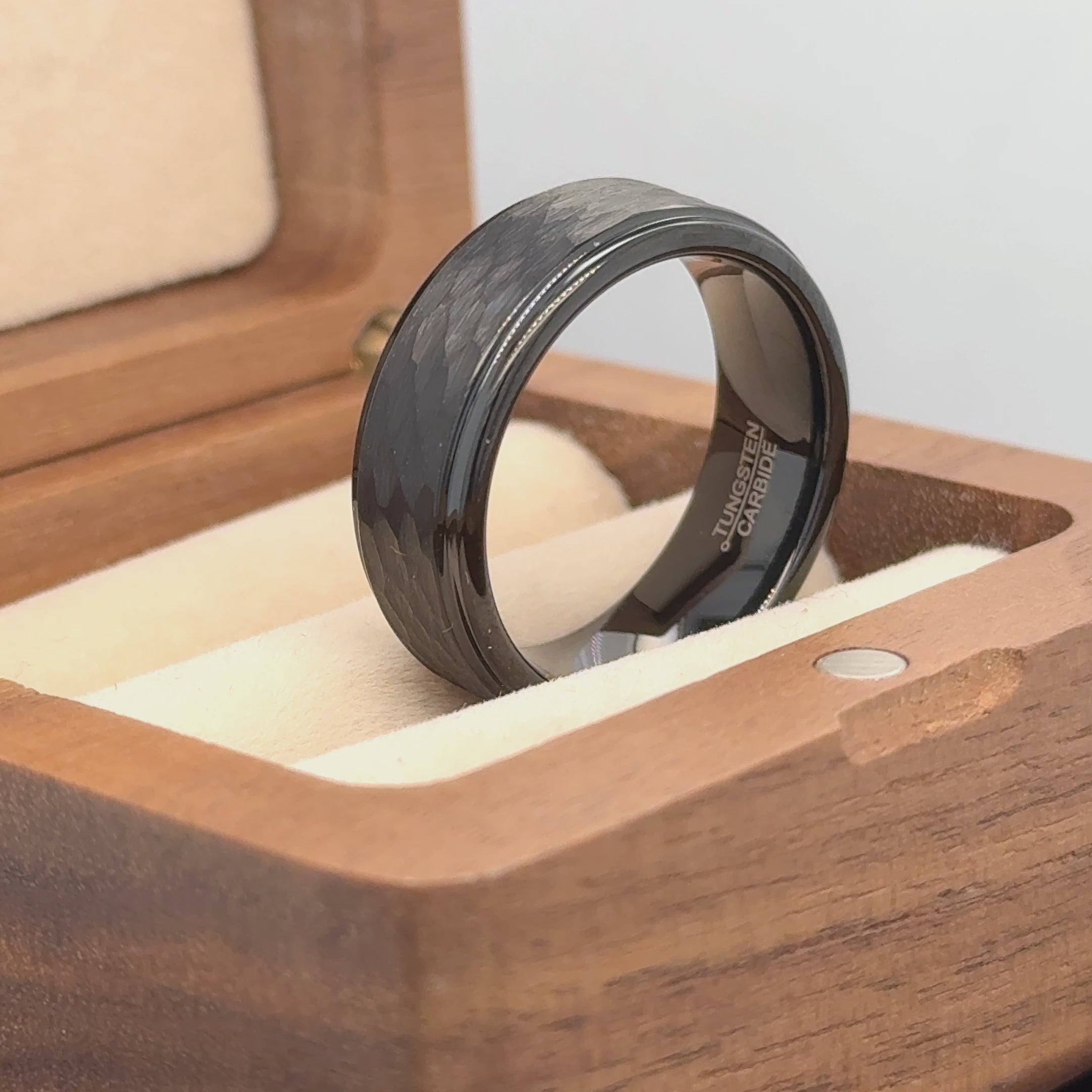 Black/Gun Metal IP Plated Hammered Center with Stepped Edge Tungsten Ring