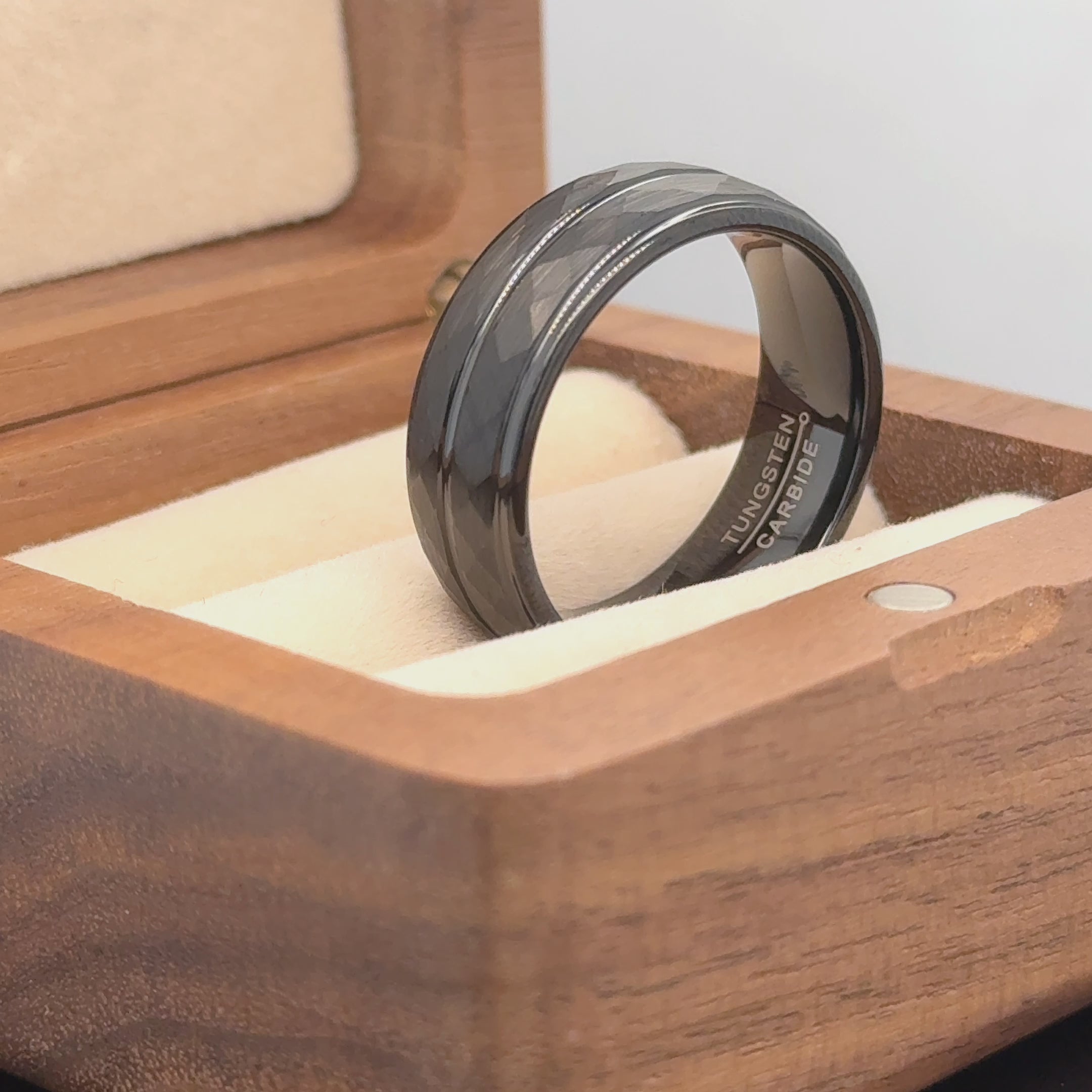 Black IP Diamond-Faceted Finish with Center Groove Tungsten Ring