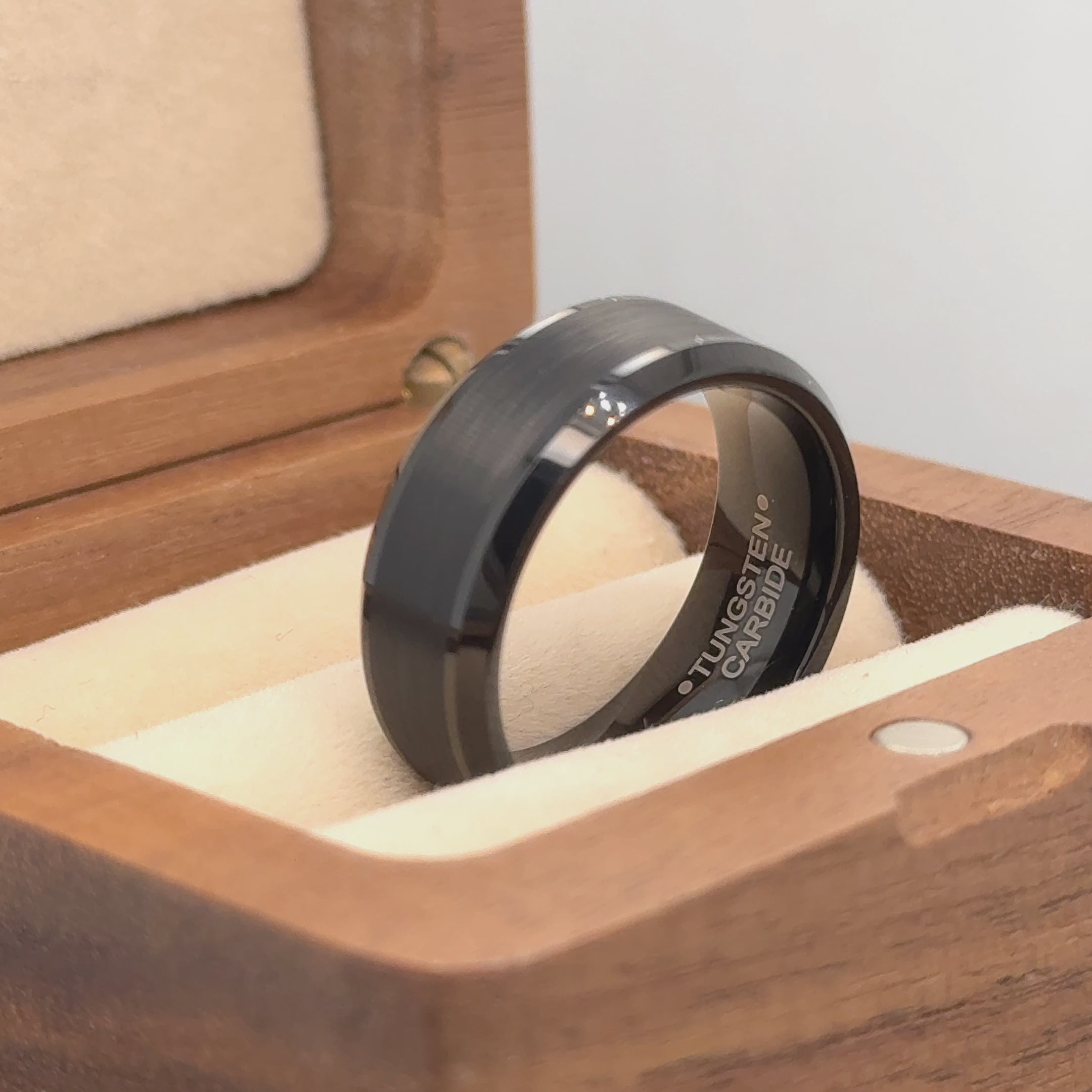 Black IP Plated Brushed Center Beveled Edge Tungsten Ring