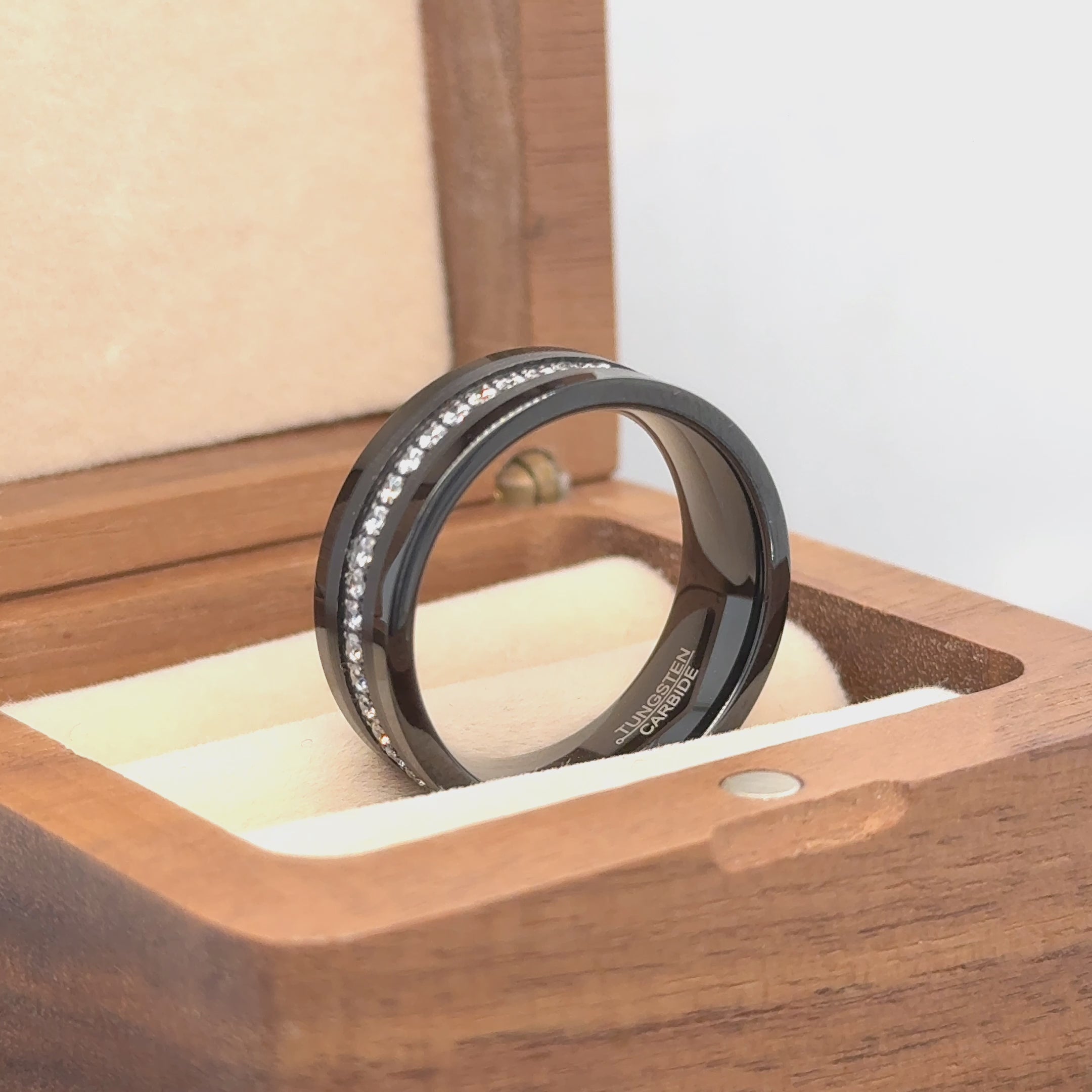 8mm Black IP Plated Prong-set Round-cut White/Black CZ Eternity Tungsten Ring