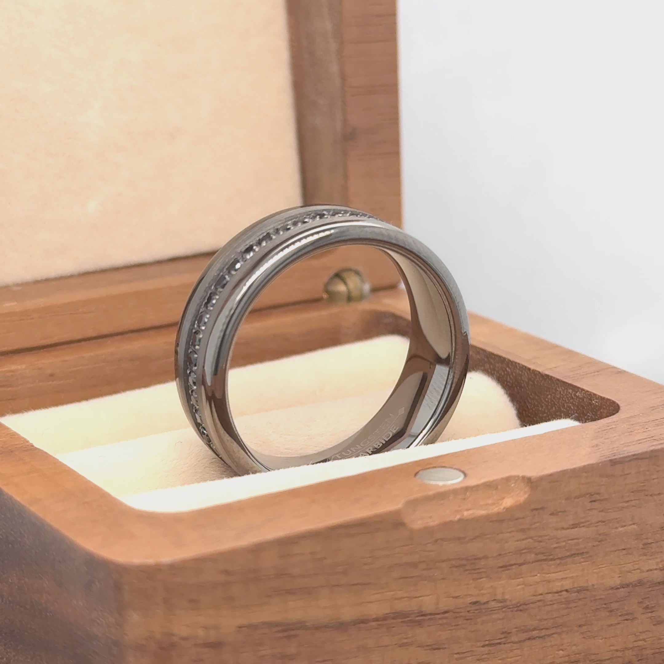 8mm Black IP Plated White/Black CZ Eternity Beveled Edge Tungsten Ring - Men's Tungsten Jewelry