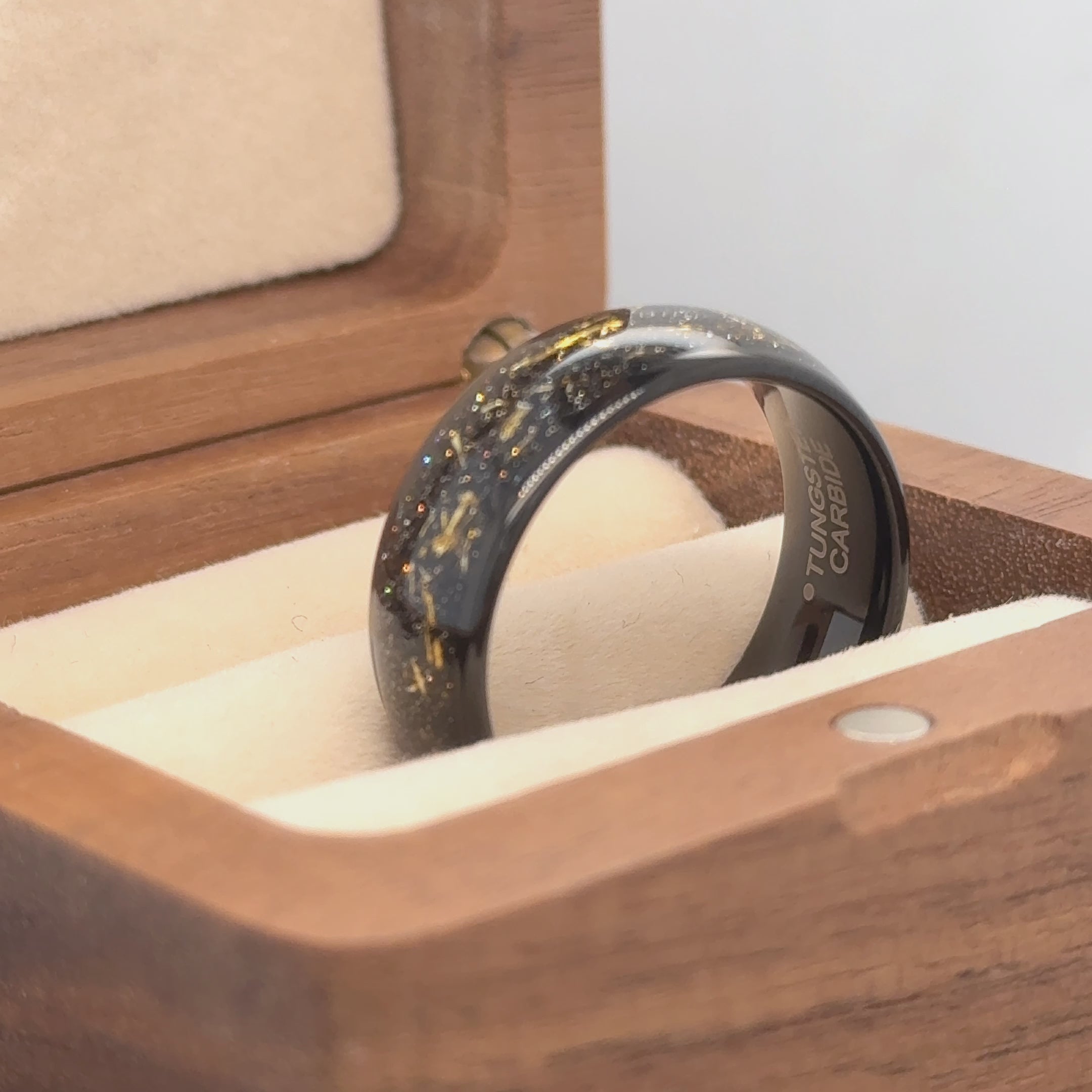 Black IP Plated with Imitation Yellow Meteorite Inlay Tungsten Ring