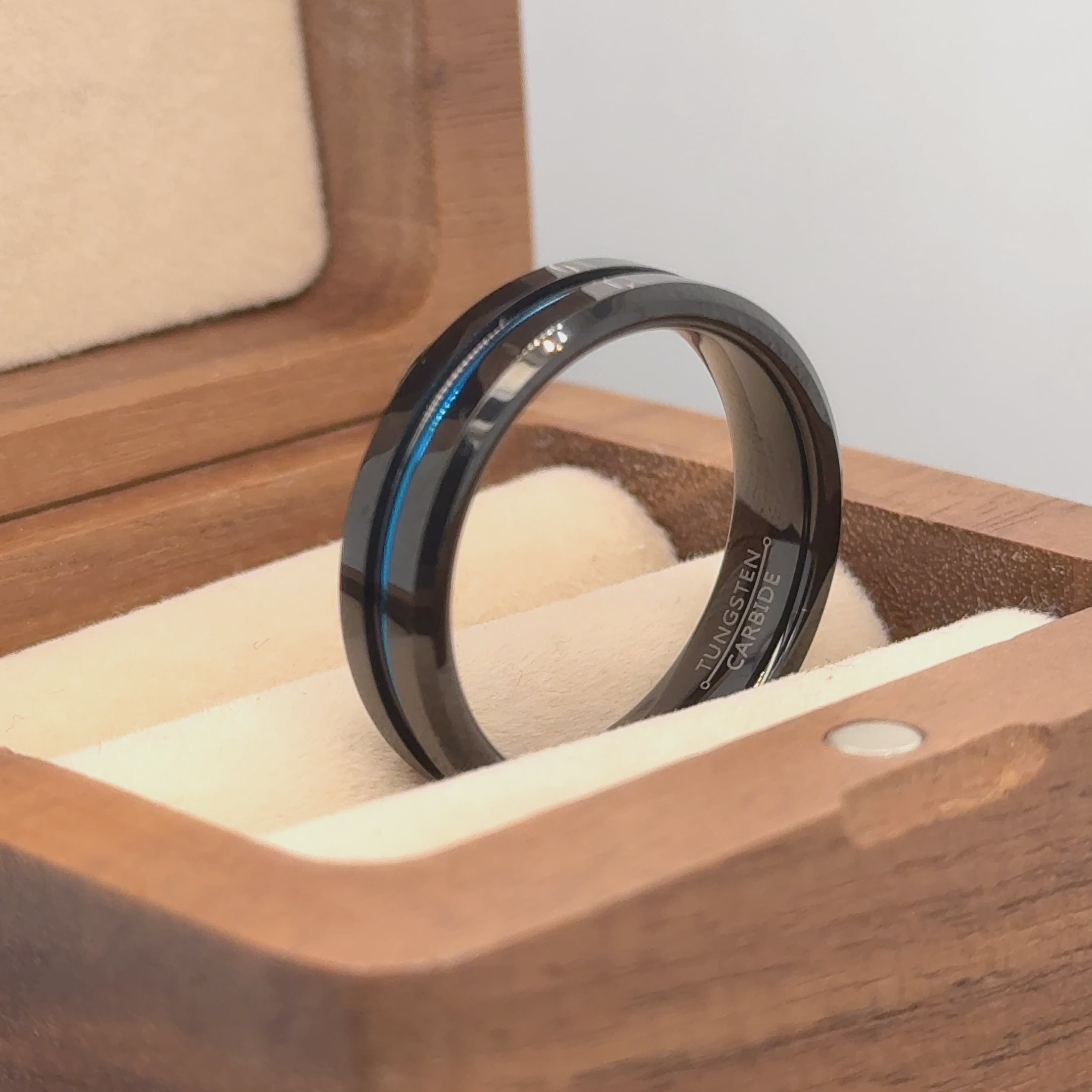 Elevate your style with our Black IP Shiny with Blue IP Plated Grooved Center Tungsten Ring. This ring features a captivating design with a black IP plated exterior and a striking blue IP plated grooved center. The high-shine finish enhances its visual appeal, making it a standout piece for any occasion. Crafted from tungsten, renowned for its durability and scratch resistance, this ring ensures lasting wear and maintains its polished look over time. Hypoallergenic properties make it suitable for sensitive skin, while the grooved center adds depth and character. Perfect for weddings, engagements, or as a stylish accessory, this ring combines modern aesthetics with practicality.