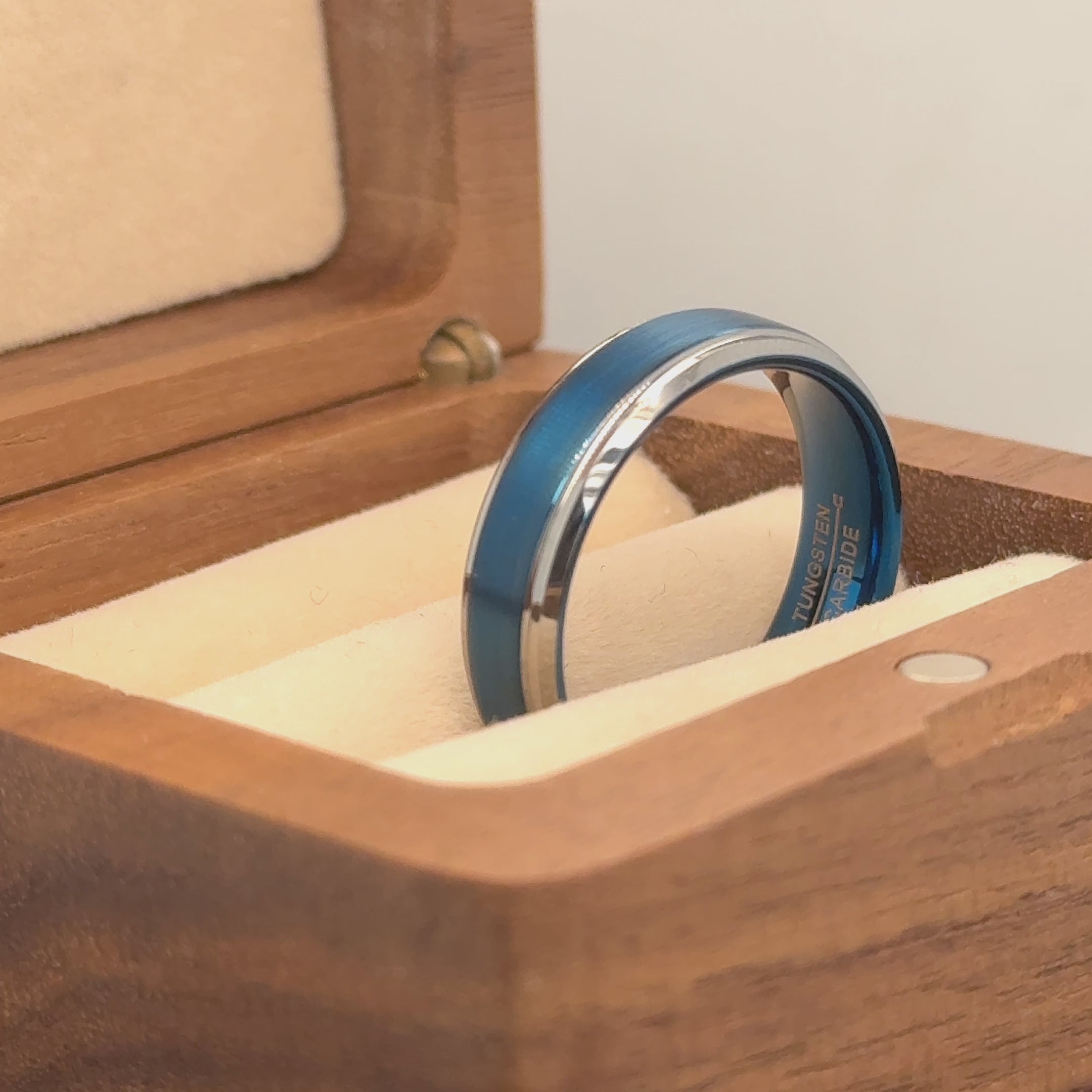 Embrace modern elegance with our Blue IP Brushed Center High Polish Stepped Tungsten Ring. Crafted from premium tungsten carbide, renowned for its durability and scratch-resistance, this ring combines strength with refined aesthetics. The brushed blue IP center adds a touch of boldness, while the high polish stepped edges create a sleek and sophisticated contrast. Whether worn as a wedding band or a statement piece, this ring promises both durability and timeless style. Elevate your ensemble with a ring that reflects your individuality and celebrates your special moments.