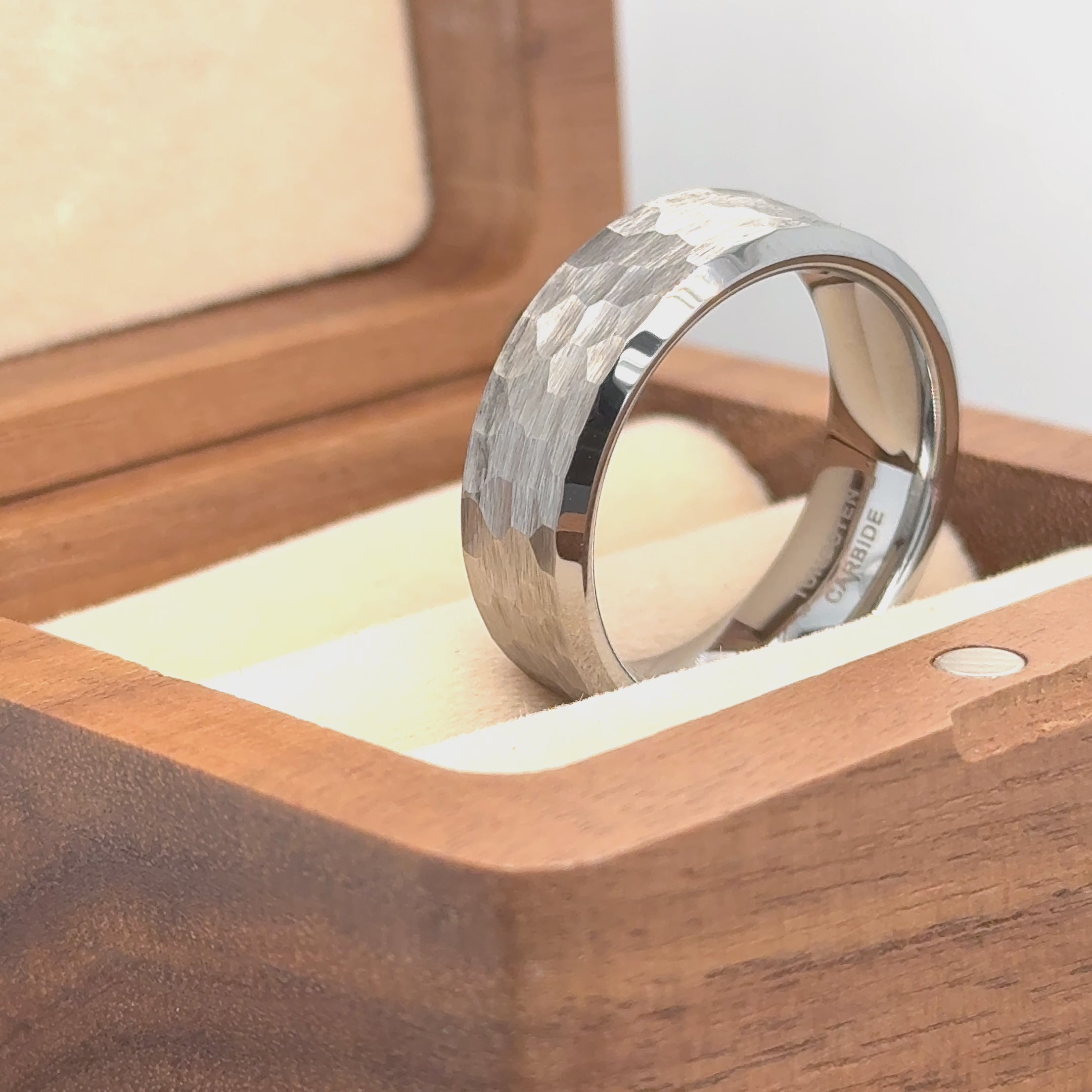 8mm Brushed Honeycomb Finish Beveled Edge/Concave Hammered Brushed Finish Tungsten Ring