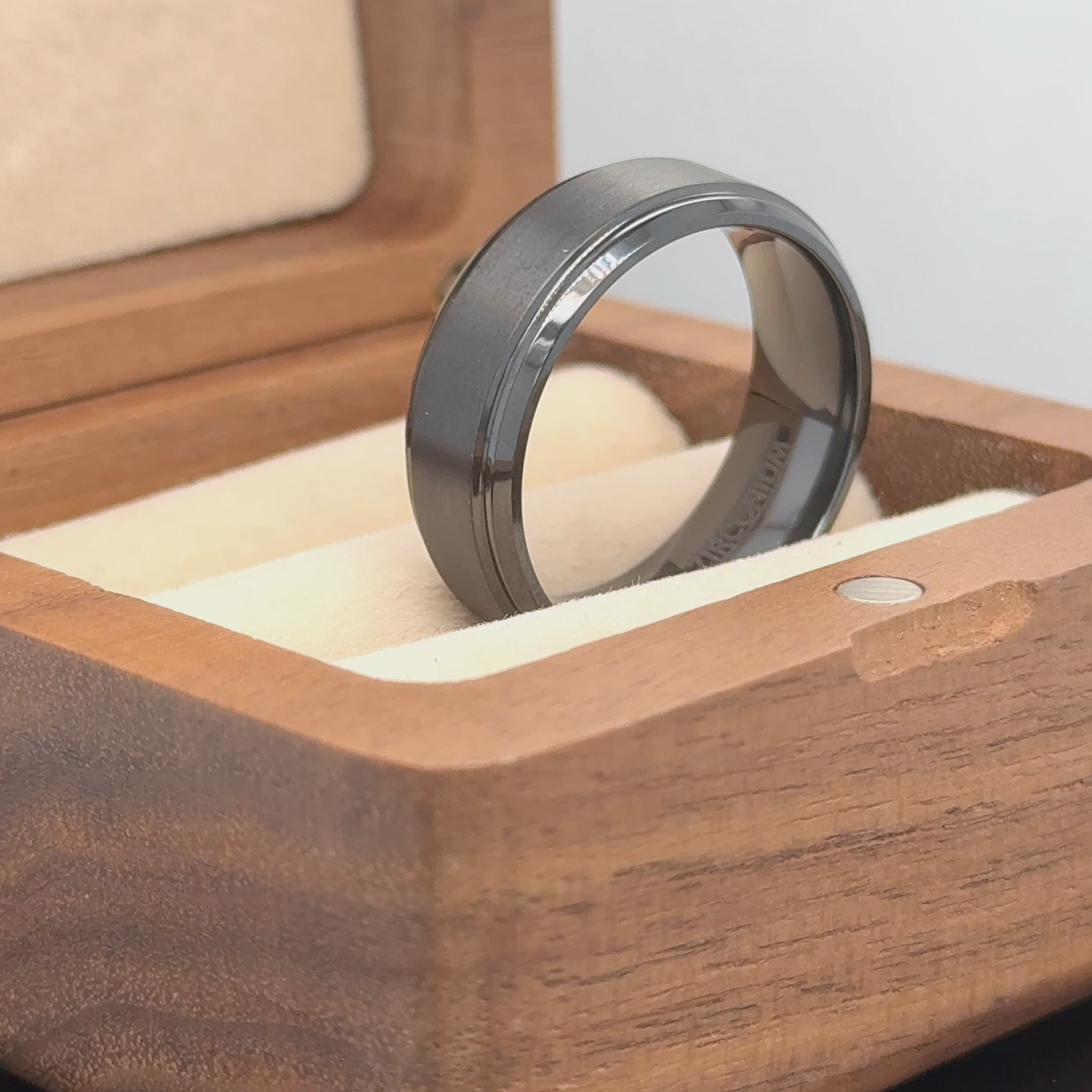 Domed Black IP Plated Brushed Center High Polished Grooved Edge Tungsten Ring Zirconium Natural Gun Metal Tone Ring