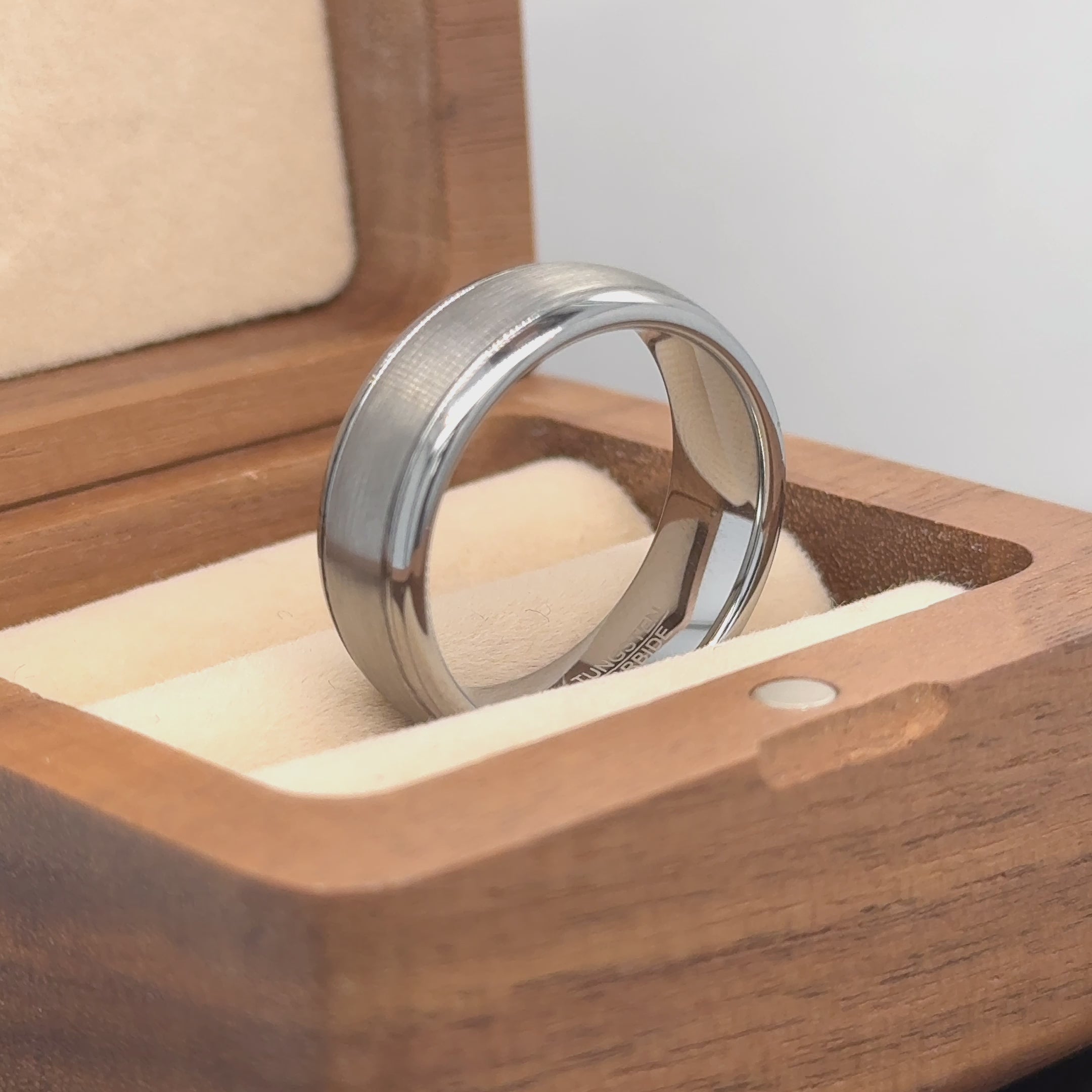 Domed Brushed Center High Polish Ridge Edge Tungsten Ring