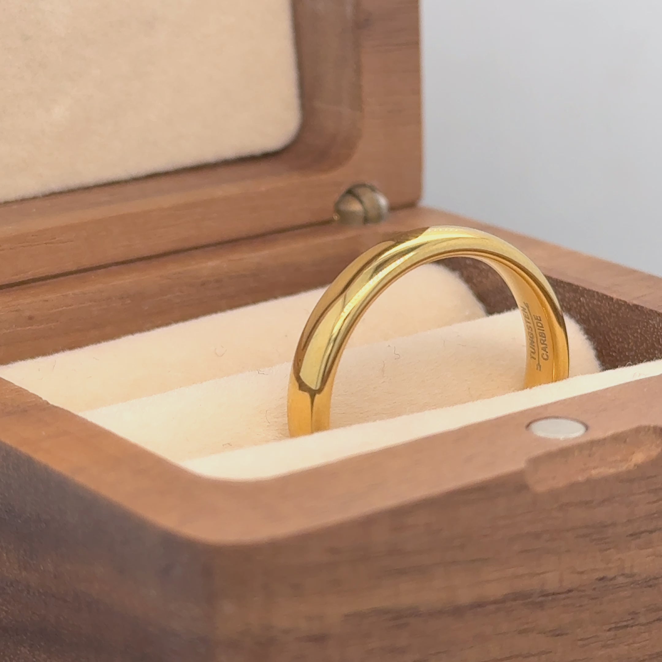 Domed Gold-Plated Shiny Polish Tungsten Ring