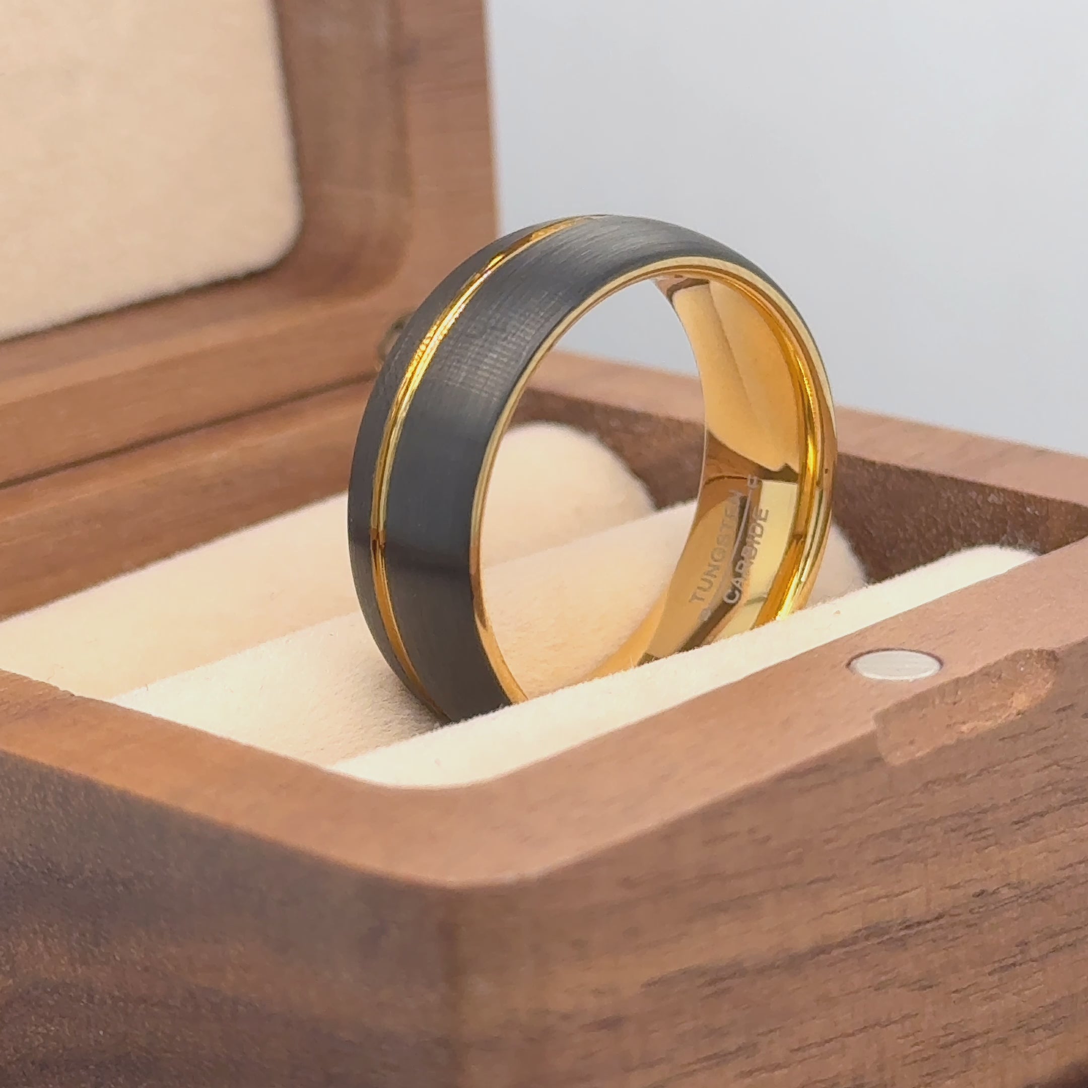 8mm Domed Gun Metal IP Plated / Yellow Gold & Faceted Black IP Plated Ring with Off-center Groove