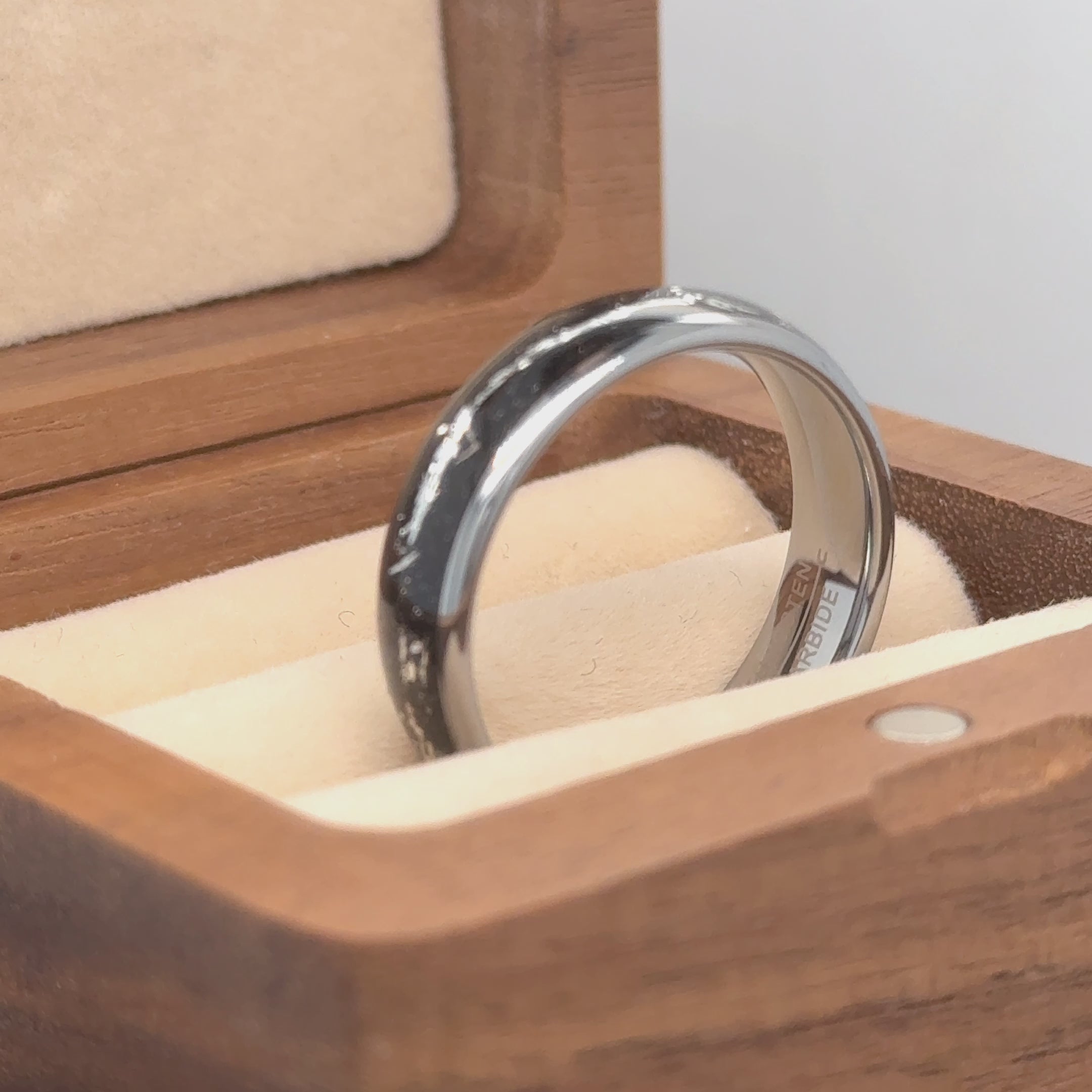 ✅ Unique Design: Domed tungsten ring with imitation meteorite detailing.