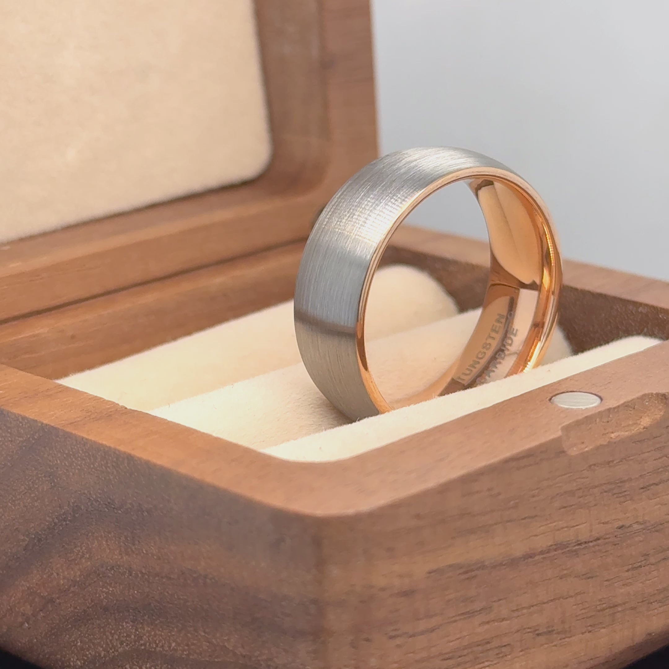 Domed Rose Gold IP Plated Inside & Gun Metal Brushed Center Tungsten Ring