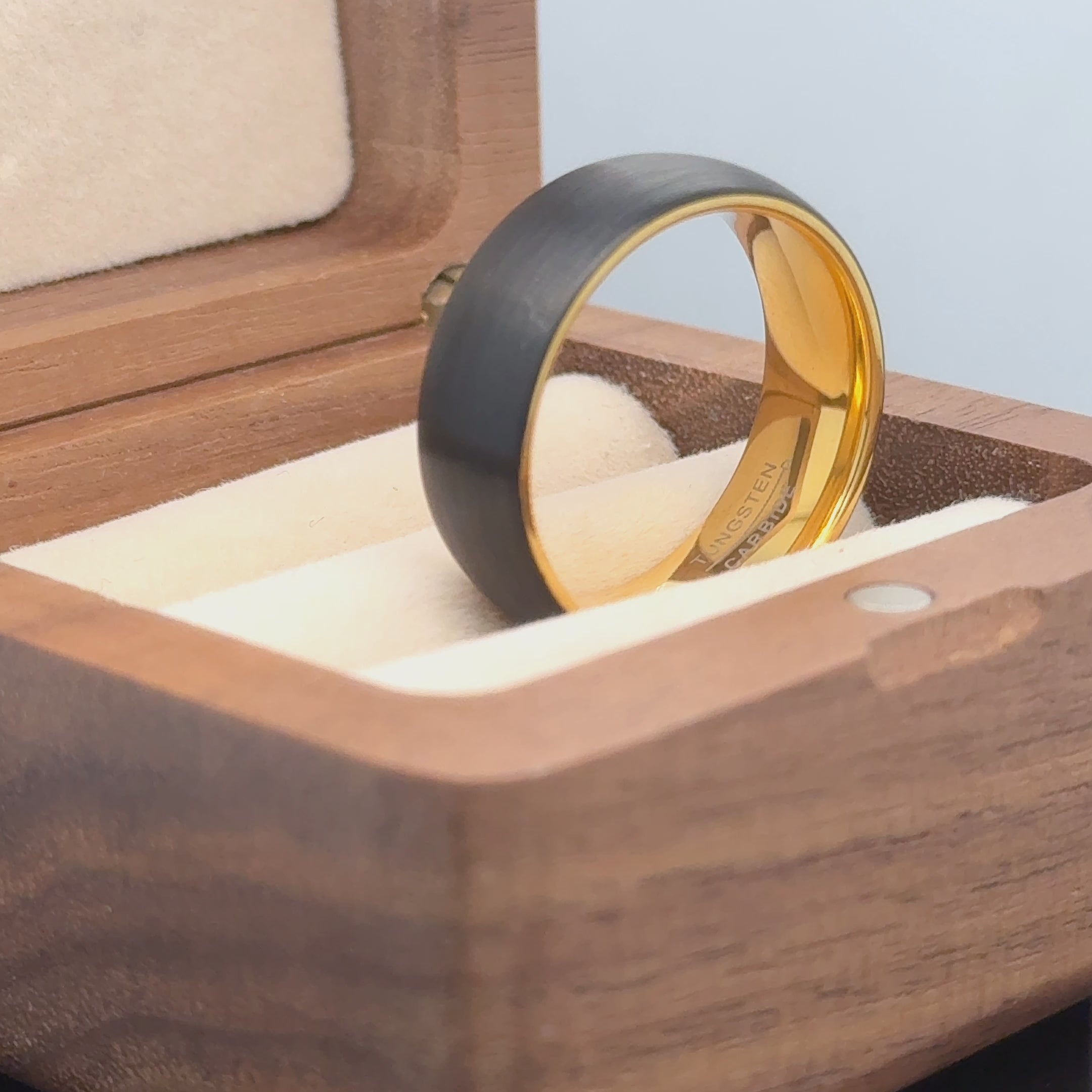 Domed Yellow Gold IP Plated Inside & Black IP Plated Brushed Center Tungsten Ring