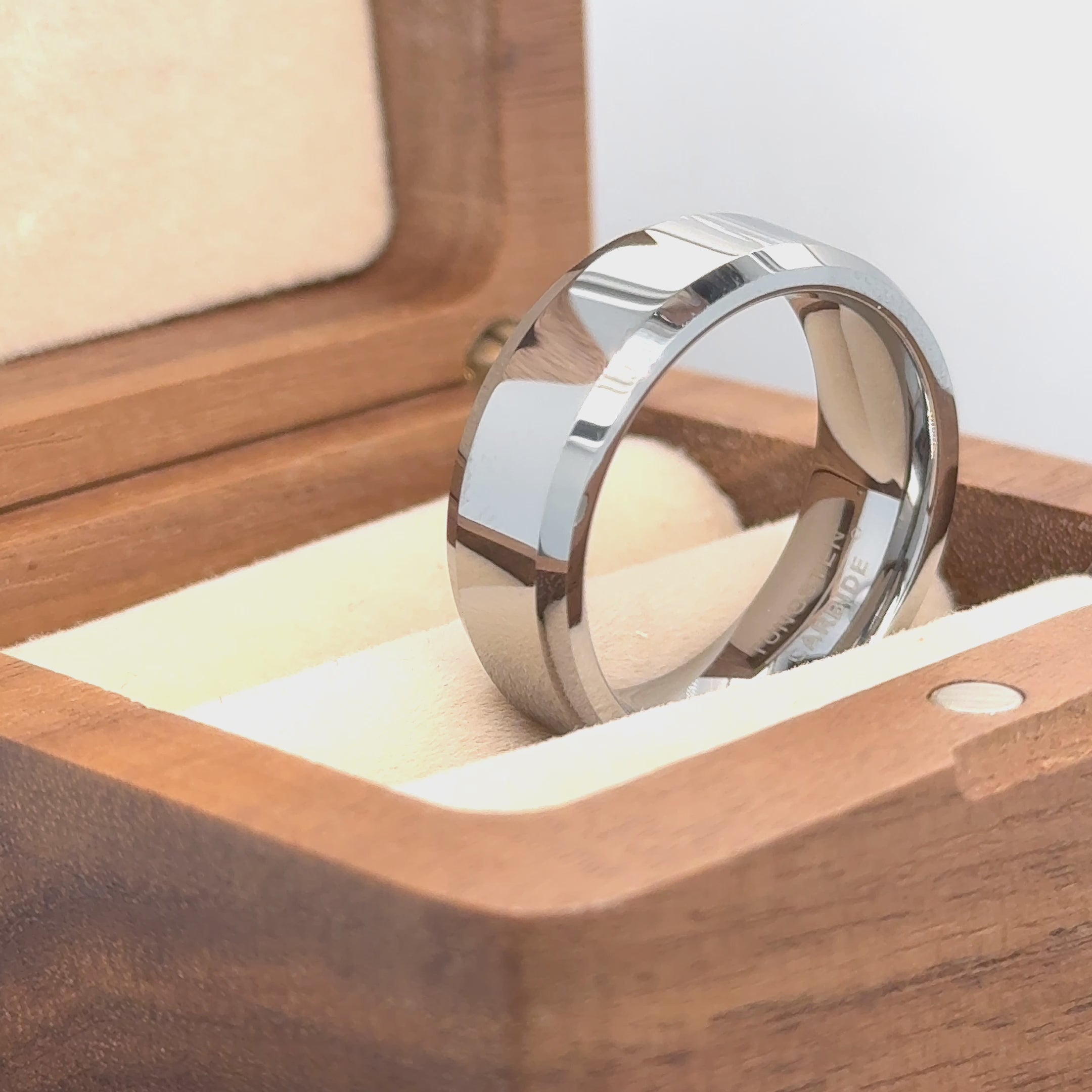 Discover timeless elegance with our High Polish & Beveled Edge Tungsten Ring. Crafted from tungsten carbide, known for its exceptional durability and scratch resistance, this ring features a high polish finish that enhances its sophisticated appearance. The beveled edges provide a sleek and modern contrast, making it suitable for any occasion. Whether chosen as a symbol of commitment or as a fashion-forward accessory, this ring combines durability with classic style. Our High Polish & Beveled Edge Tungsten Ring is designed to withstand daily wear while maintaining its polished look.