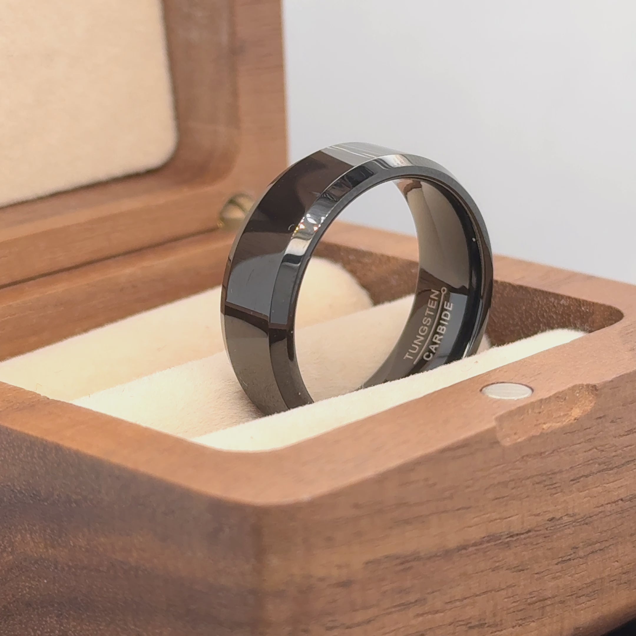 ✅ Crafted from durable tungsten carbide with a high polish black IP plating.