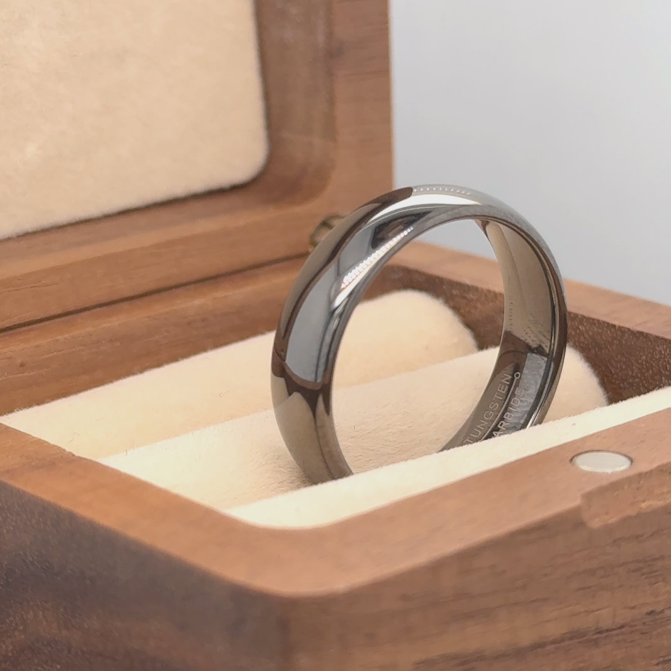 High Polished Shiny Gun Metal IP Plated Classic Domed Tungsten Ring