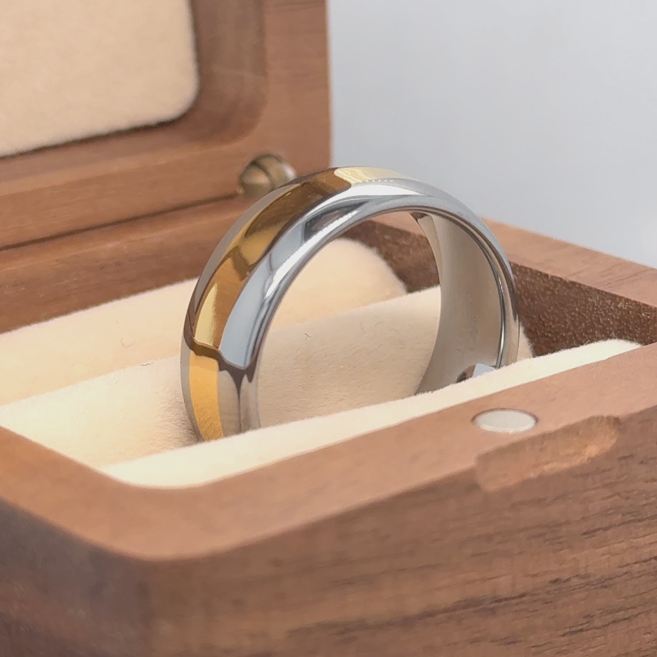 High Polished Yellow Gold IP Plated Center Tungsten Ring
