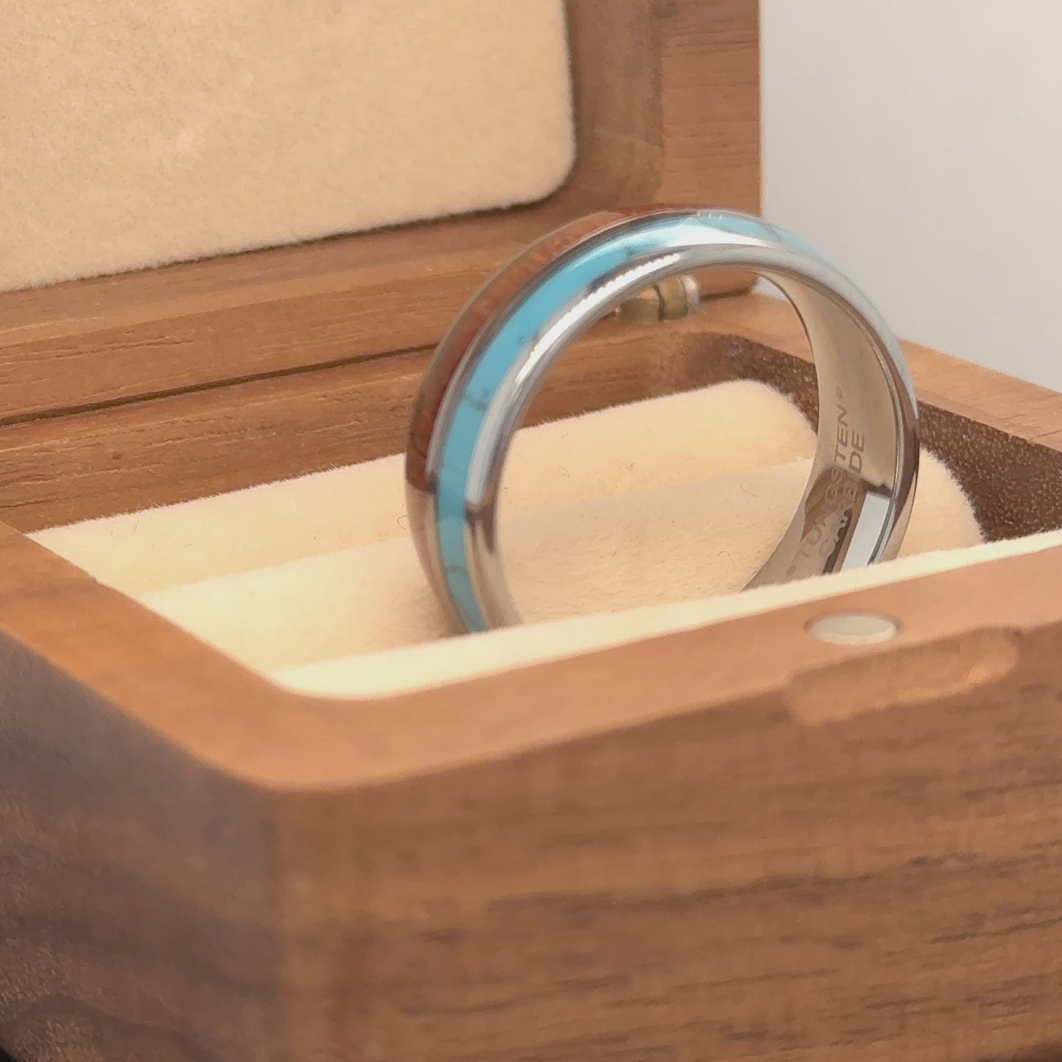 8mm Koa Wood & Synthetic Opal/Turquoise Inlay Domed Tungsten Ring