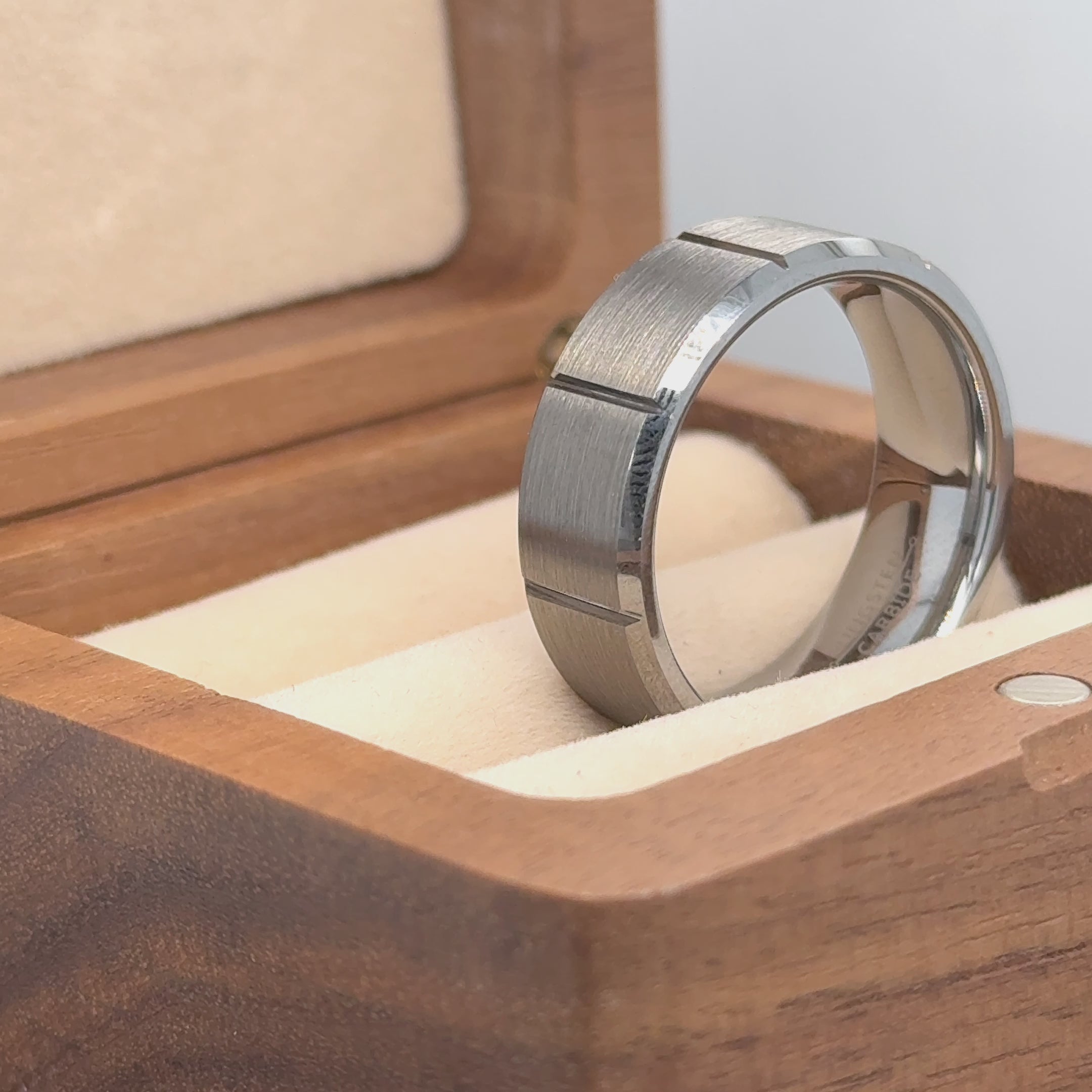 Discover the elegance and durability of our Multiple Vertical Grooves Brushed Center Tungsten Ring. Crafted from tungsten, known for its strength and scratch-resistance, this ring showcases a unique design with multiple vertical grooves that add depth and texture. The brushed center enhances its modern appeal, making it a versatile choice for any occasion. Whether selected as a symbol of commitment or worn as a bold fashion statement, this ring combines strength with contemporary design, catering to the discerning tastes of the modern gentleman.
