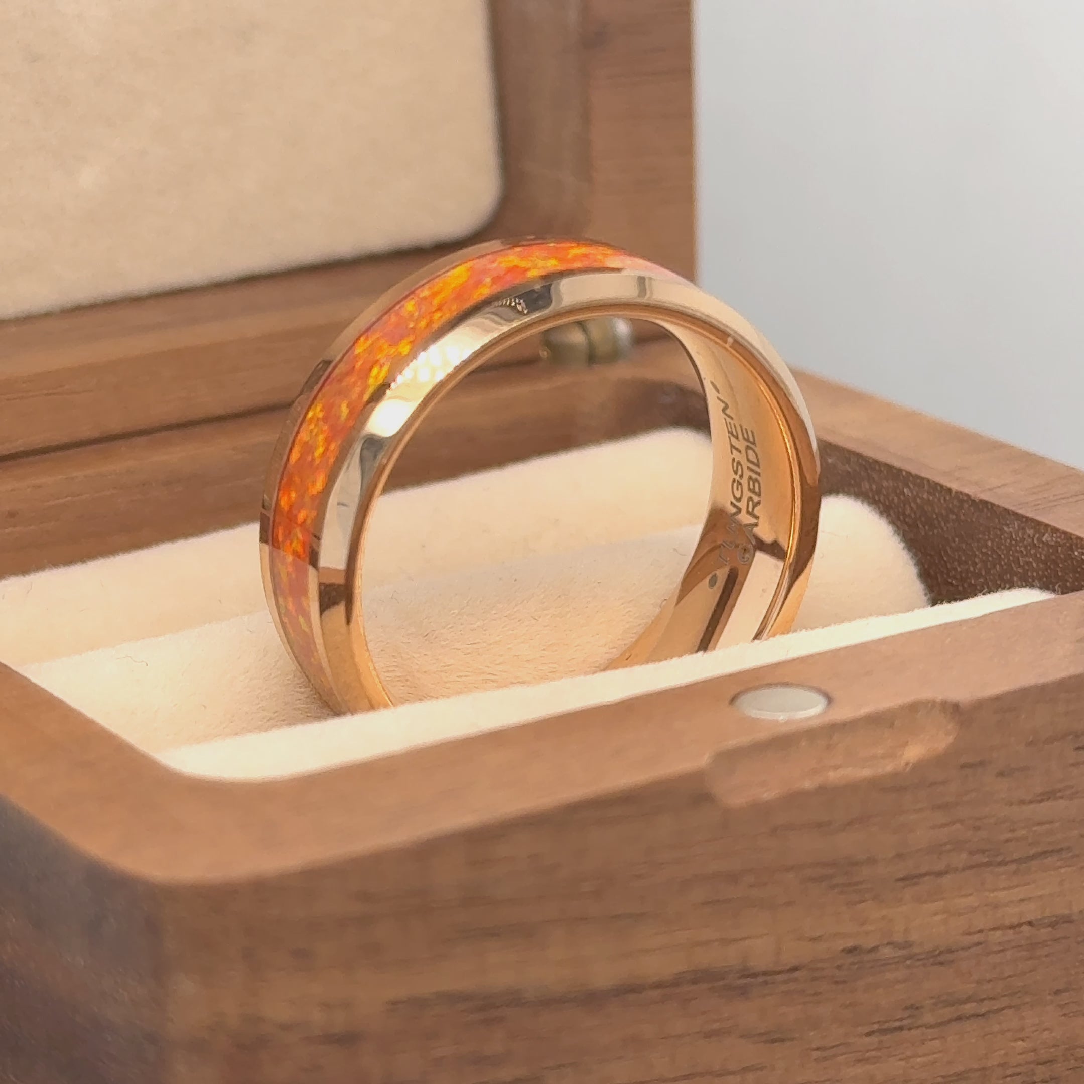 Rose Gold IP Plated with Synthetic Red Fire Opal Inlay Tungsten Ring