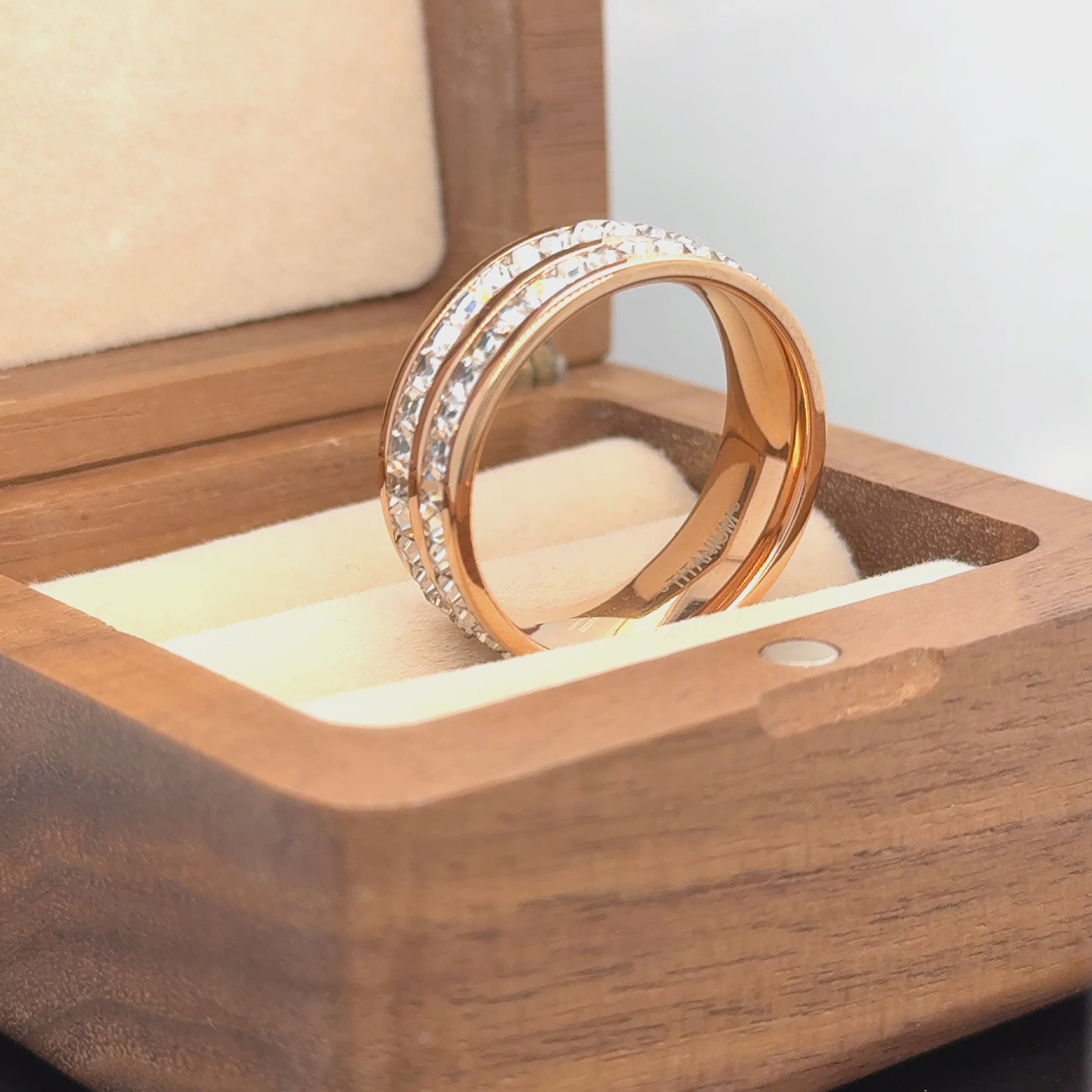 8mm Rose Gold IP Plated//Yellow Gold IP/Unplated Titanium Ring with Double Row Princess Cut Eternity CZ