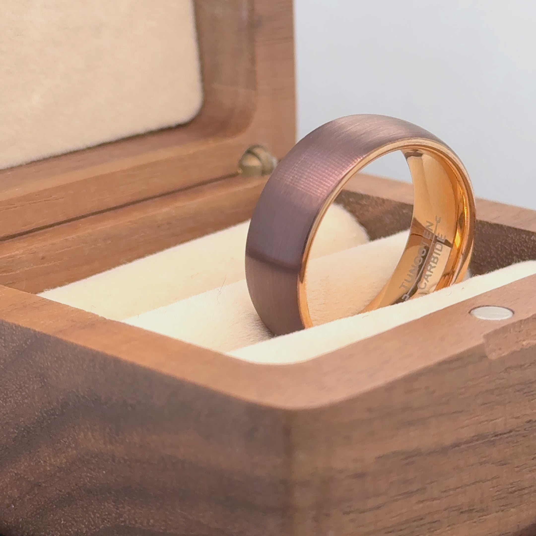 Semi-Domed Brushed Brown IP Plated & Rose Gold IP Plated Tungsten Ring