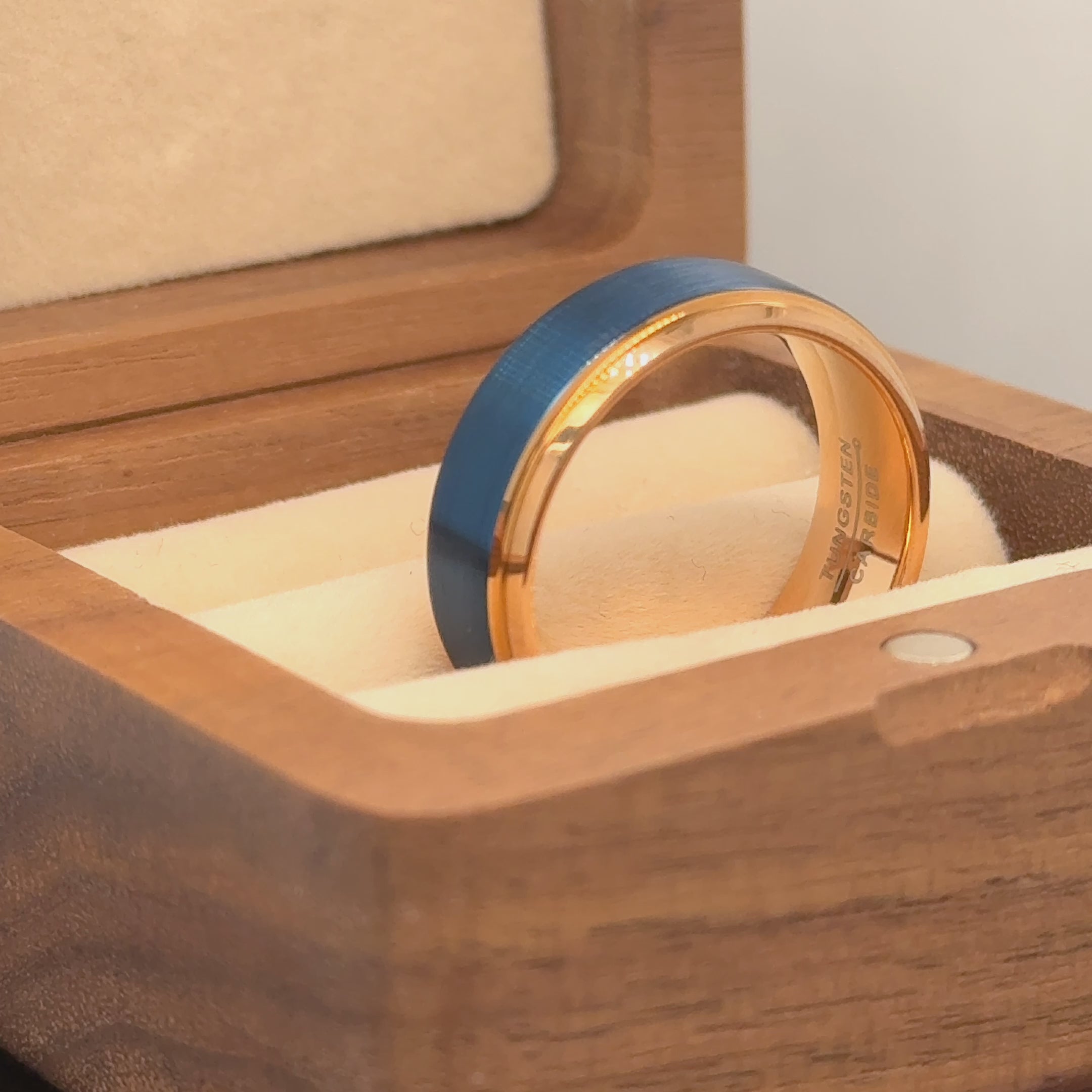Two-tone Rose & Blue IP Stepped Edge Tungsten Ring