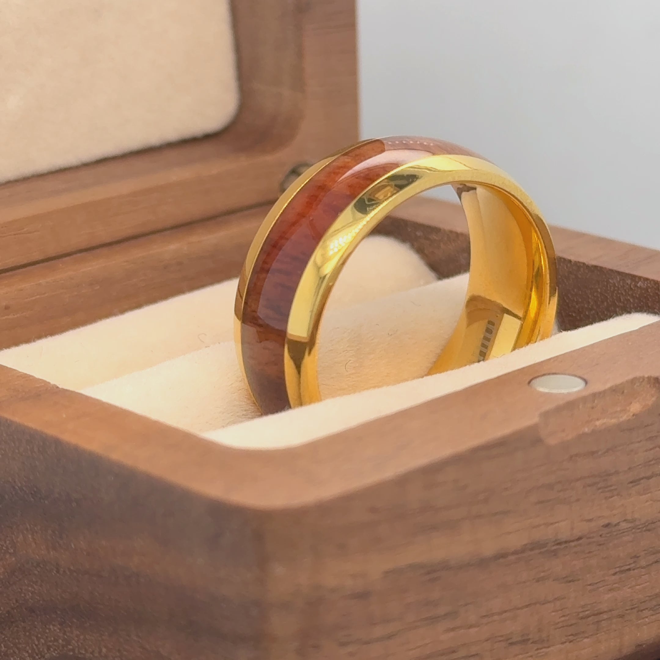 Experience the blend of strength and natural beauty with our Yellow Gold IP Koa Wood Inlay Tungsten Ring. Crafted from tungsten, renowned for its durability and resistance to scratches, this ring is further enhanced with a yellow gold IP coating that adds a touch of luxury. The centerpiece of this ring is the Koa wood inlay, sourced for its rich, deep hues and unique grain patterns, making each ring one-of-a-kind. Whether you're looking for a wedding band that stands the test of time or a thoughtful gift that combines elegance with rugged charm, our Yellow Gold IP Koa Wood Inlay Tungsten Ring is sure to exceed expectations.