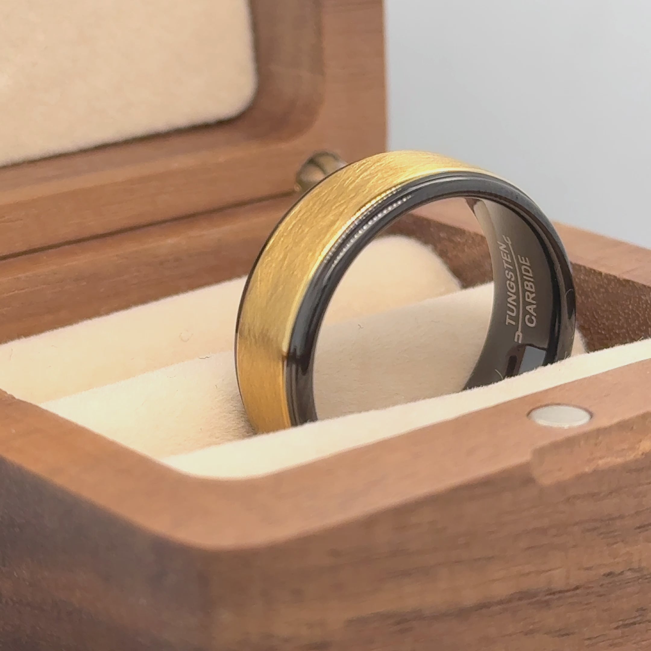 8mm Yellow Gold IP Plated Ice Finish Center Tungsten Ring with Stepped/Beveled Edge Ring