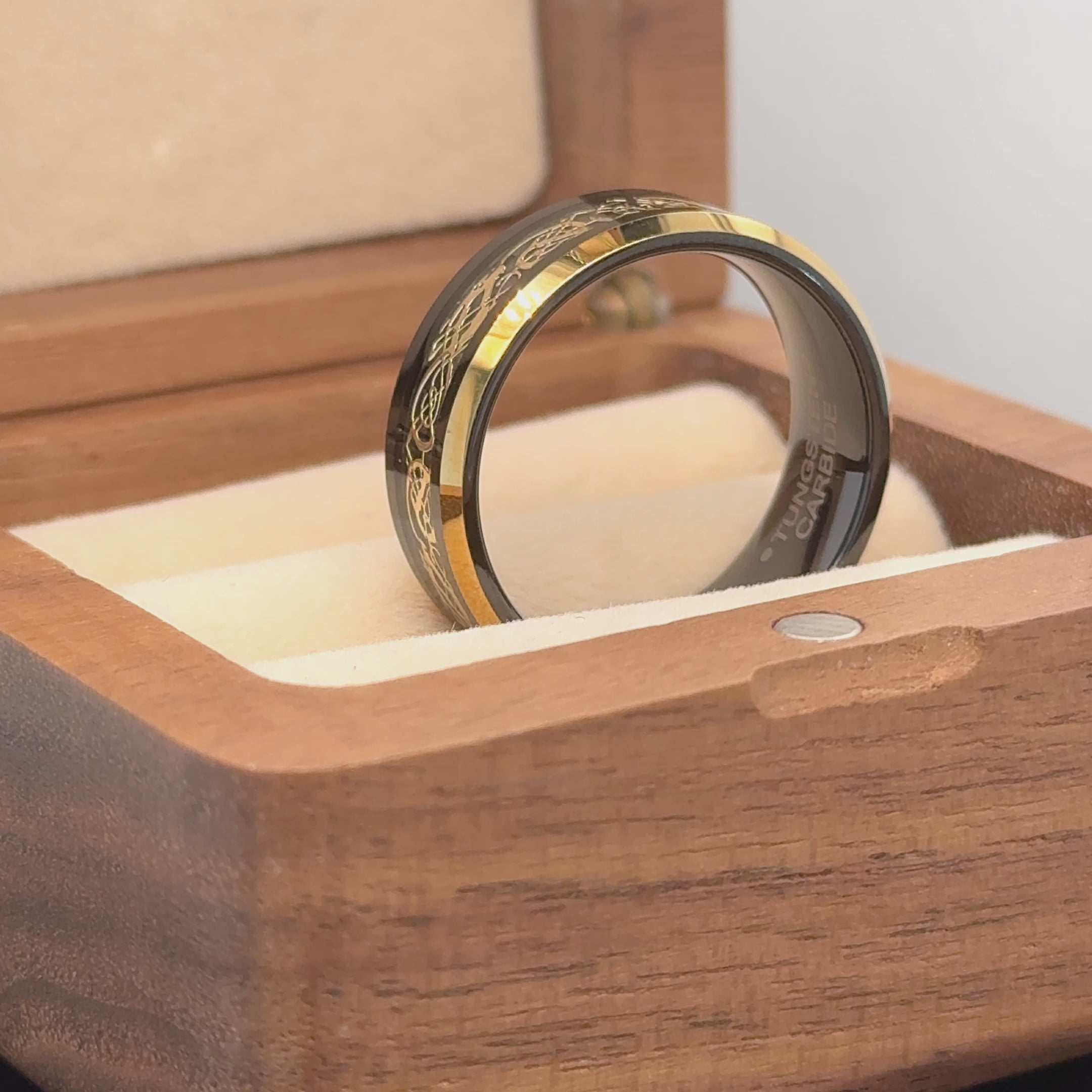 ✅ Black & Yellow Gold IP Plated Celtic Inlay Tungsten Ring
